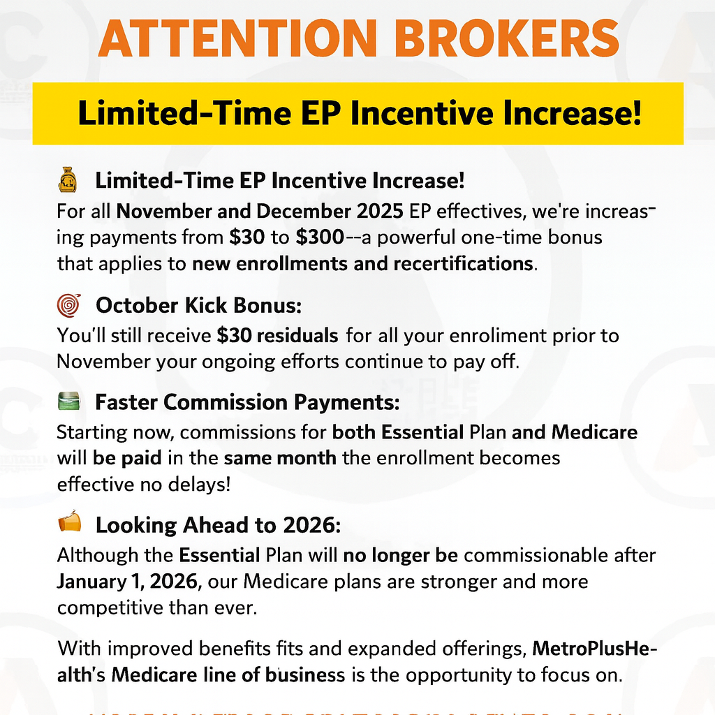 🚨 Attention Brokers: The MetroPlusHealth U65 certification blackout begins on 10/31/2025.